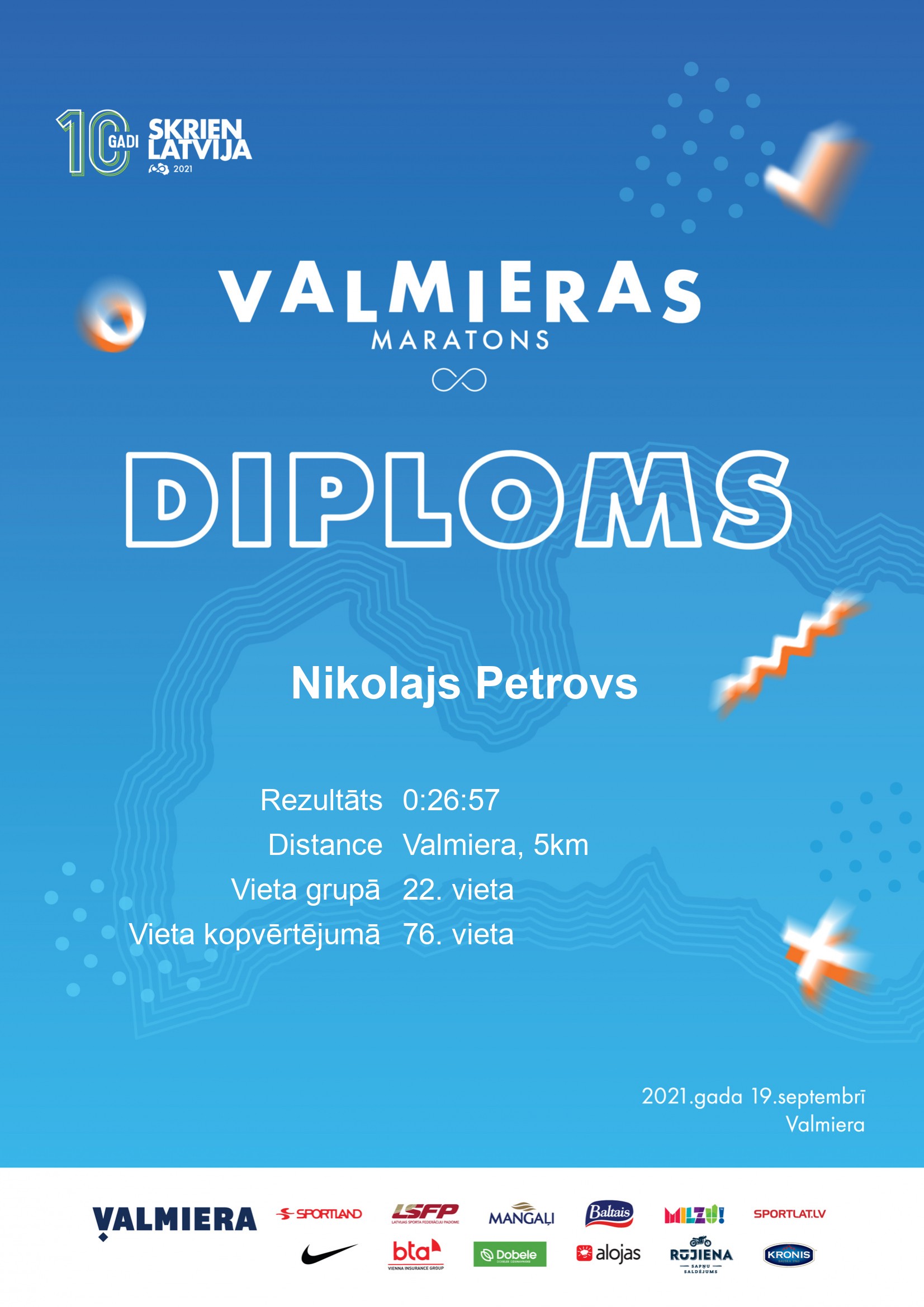 | 76. | | Nikolajs | Petrovs | Ludza | Ludza | VT | 1 | 0:26:57 | Diploms |