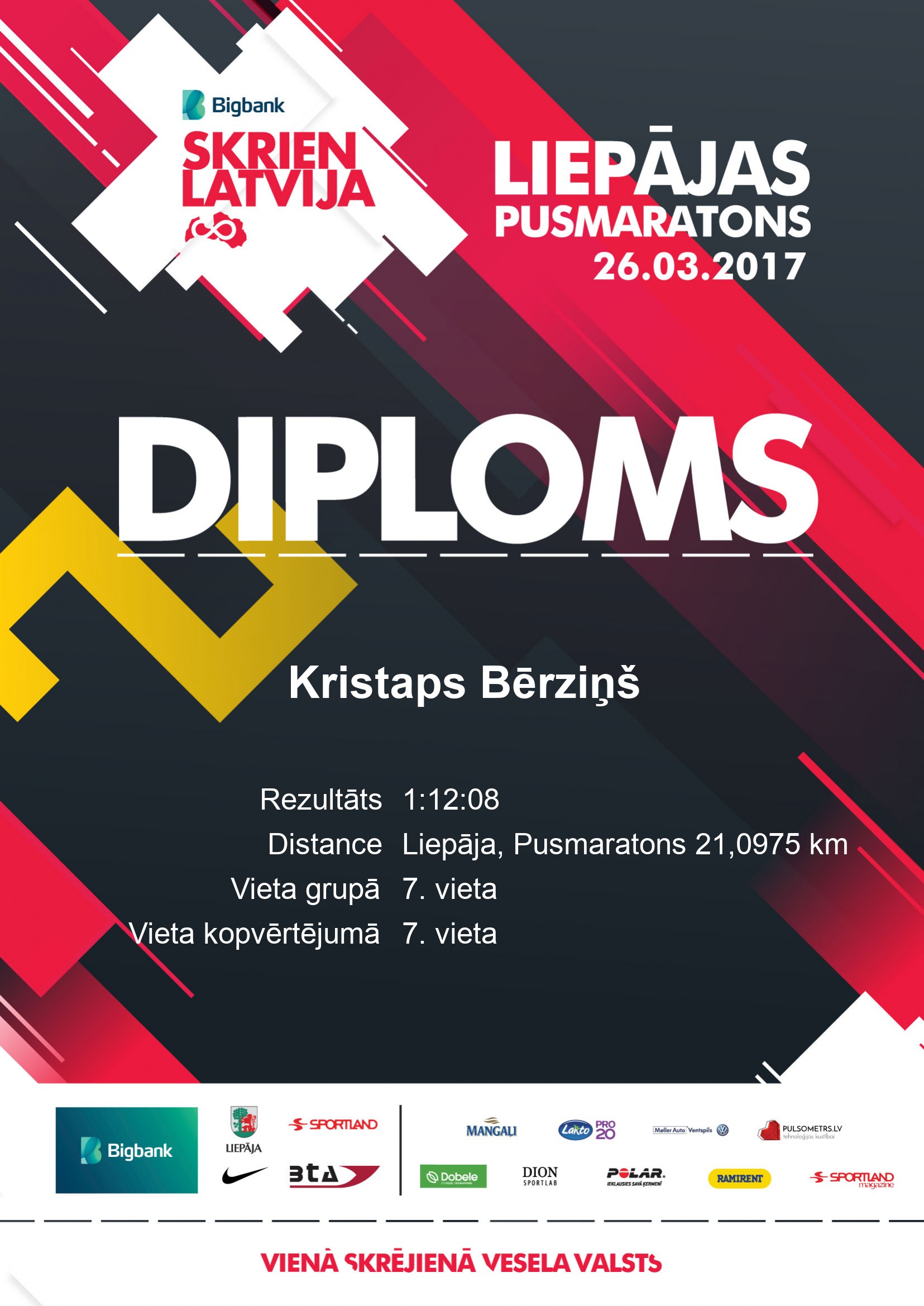 | 65. | Deniss | Cimbals | I Love Running | Mezares | 3 | 1:57:47 | Diploms | |