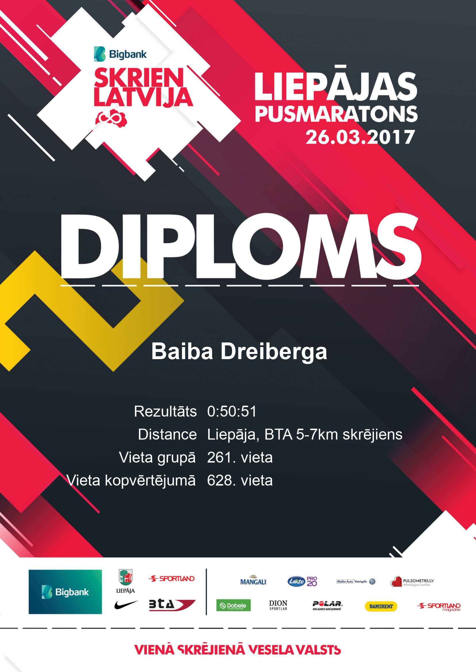 | 628. | | Baiba | Dreiberga | Suppermammas/tēti | Liepāja | ST | 1 | 0:50:51 | Diploms |