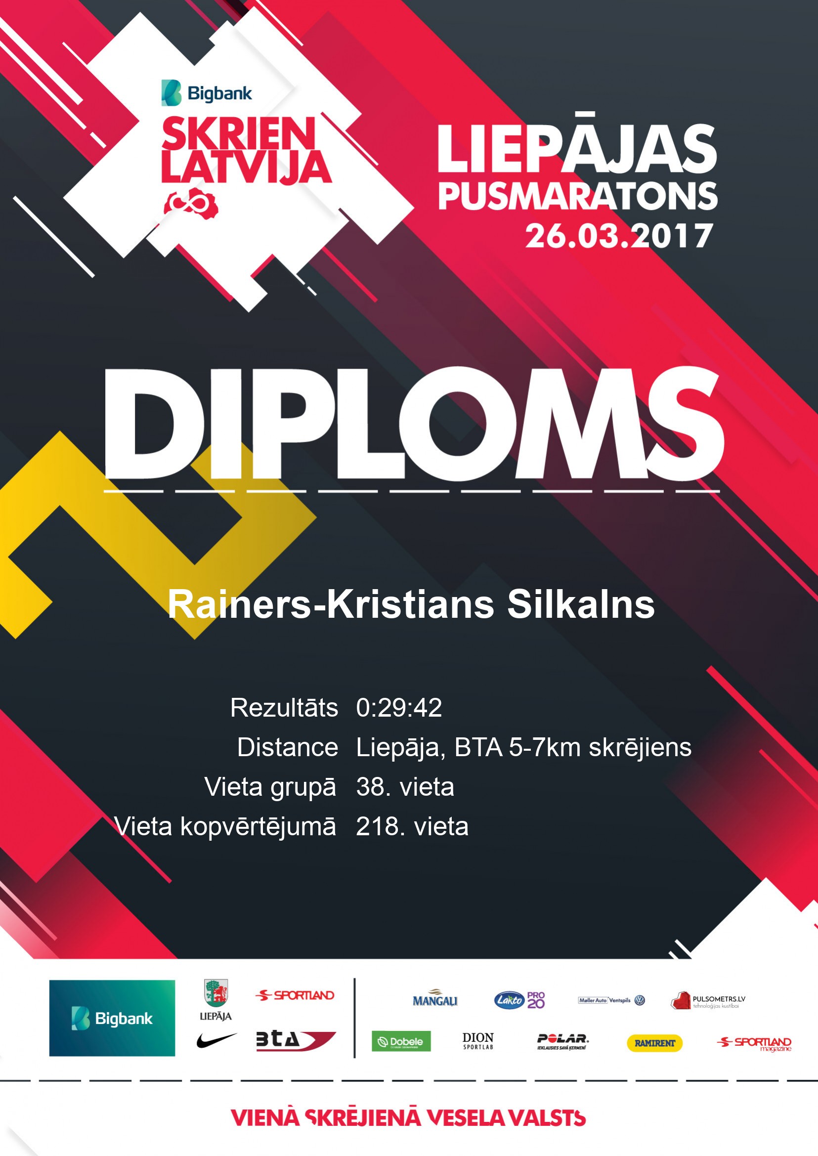 | 3. | | Artūrs | Pauliņš | Veikals 42km/Adidas | | VT | 1 | 0:17:52 | Diploms |
