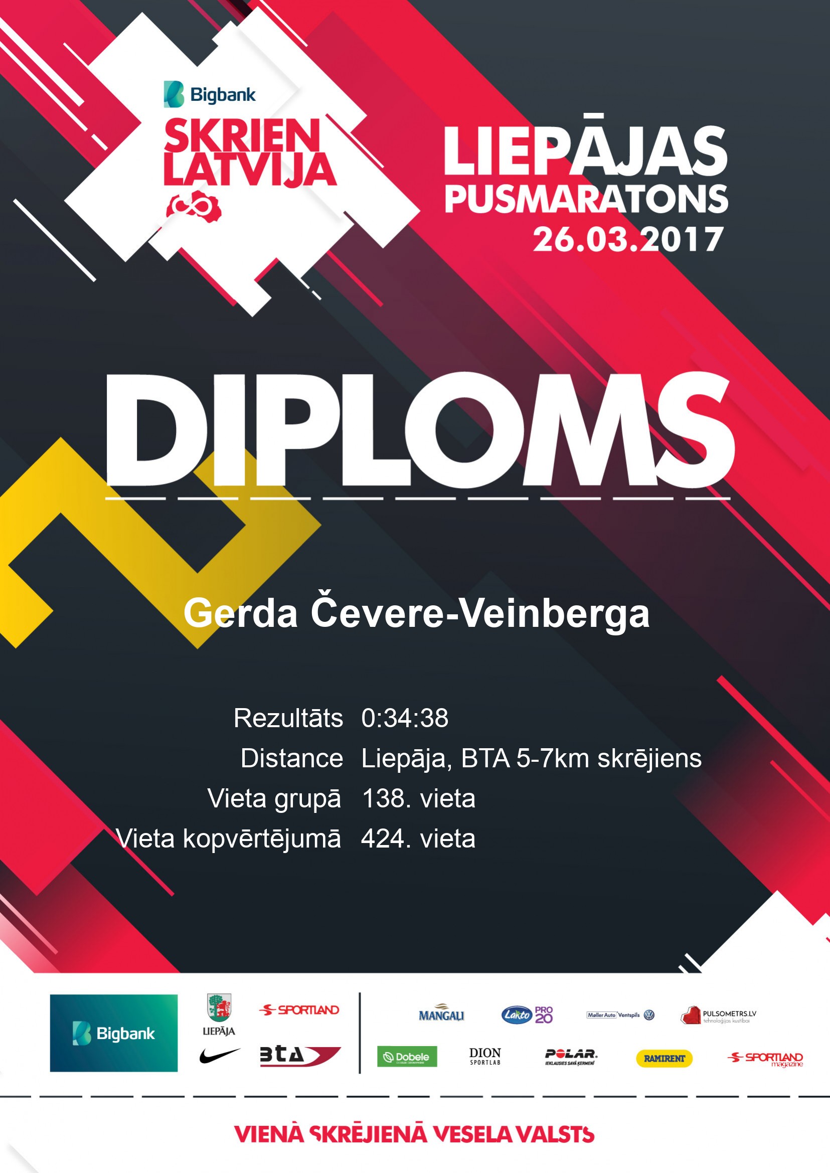 | 584. | | Kristīne | Dīka | AS Citadele banka | Liepāja | ST | 1 | 0:40:27 | Diploms |