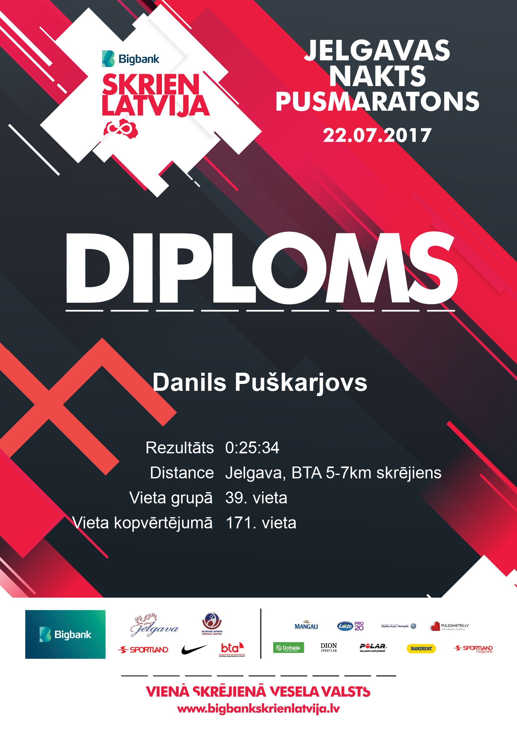 | 74. | | Mārcis | Strautnieks | | Jelgava | VT | 1 | 0:22:20 | | Diploms |