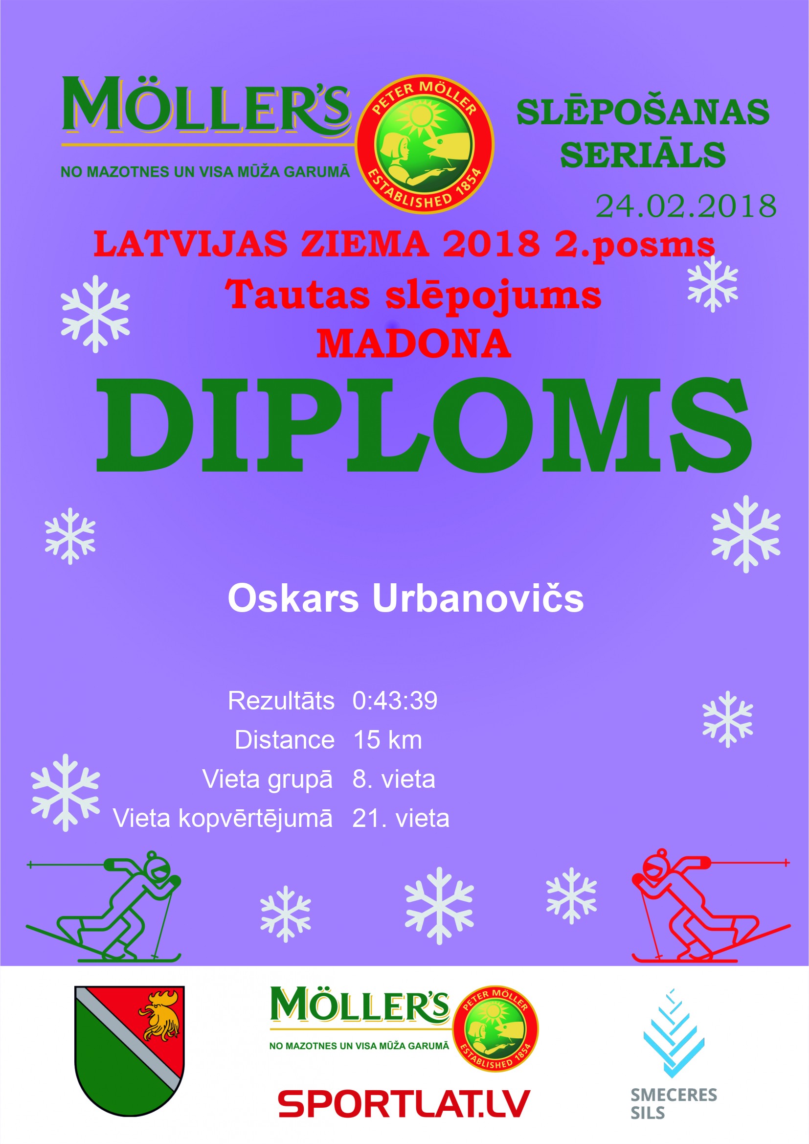Rezultāti Detalizēti rezultāti | PDF formātā | XLS formātāTautas slēpojums Madona, Moller's Slēpošanas seriāls “Latvijas ziema 2018” / 24.02.2018