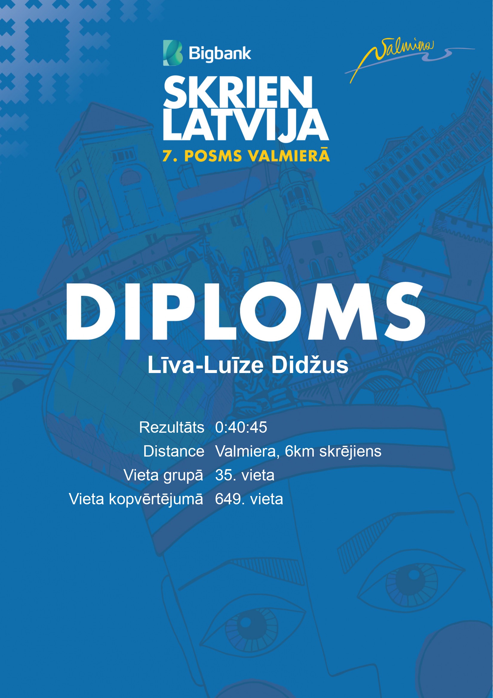 818. ĒrikaKalniņaSKRIENAM KOPĀValmieraSTB10:50:32Diploms