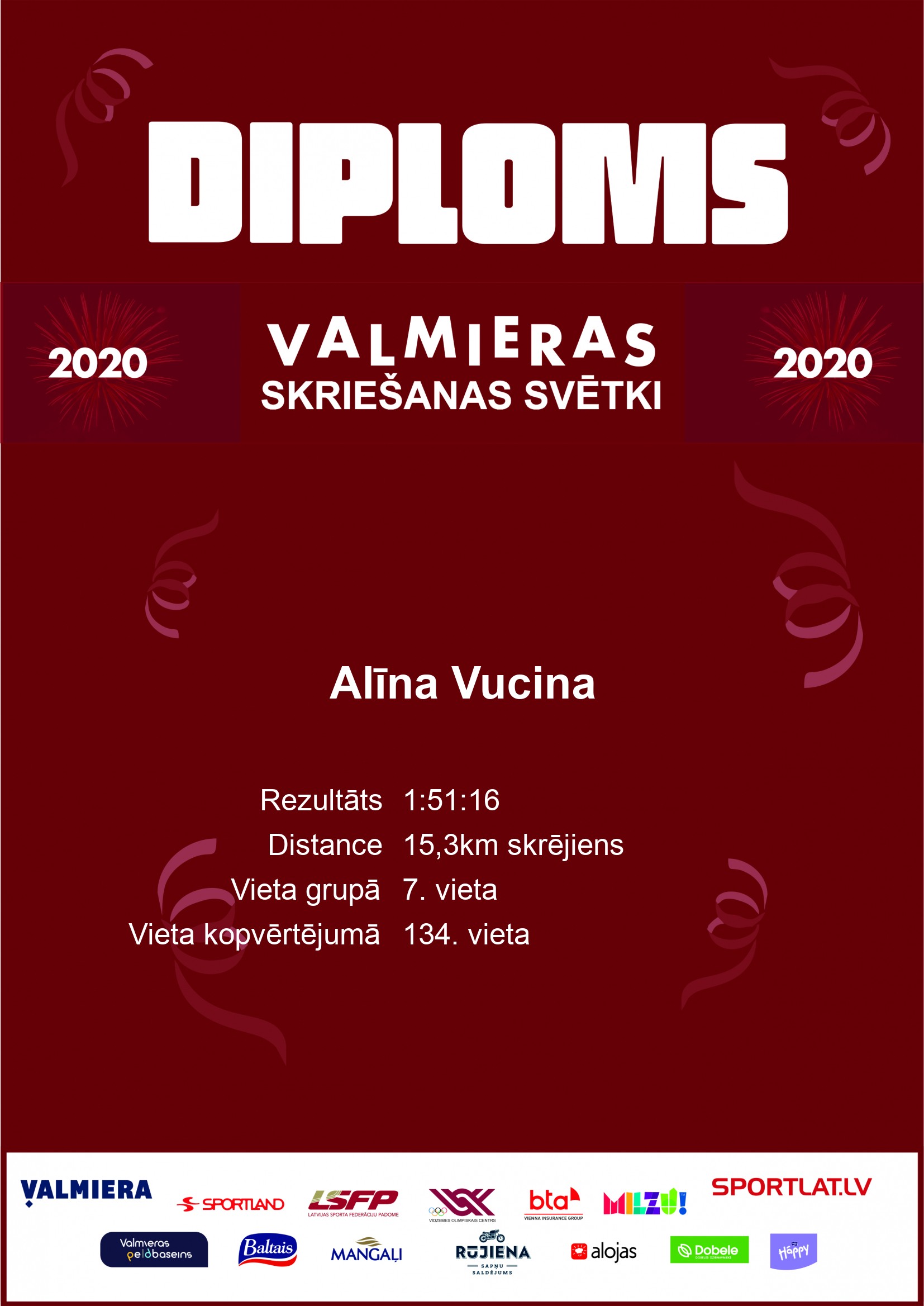 | 134. | Alīna | Vucina | Lielvārde | S20 | 4 | 1:51:16 | Diploms | ||