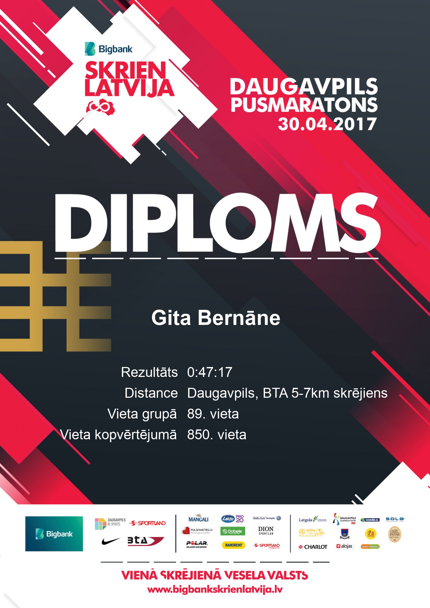 | 850. | | Gita | Bernāne | | Daugavpils | STA | 2 | 0:47:17 | 0:30:07 | Diploms |